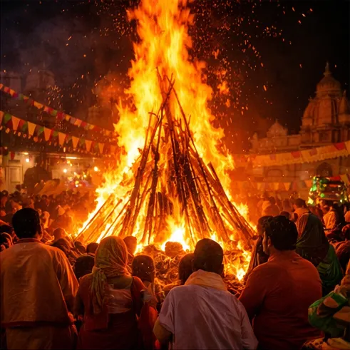 - होलिका दहन (पहला दिन) – रात को अग्नि प्रज्वलित की जाती है।