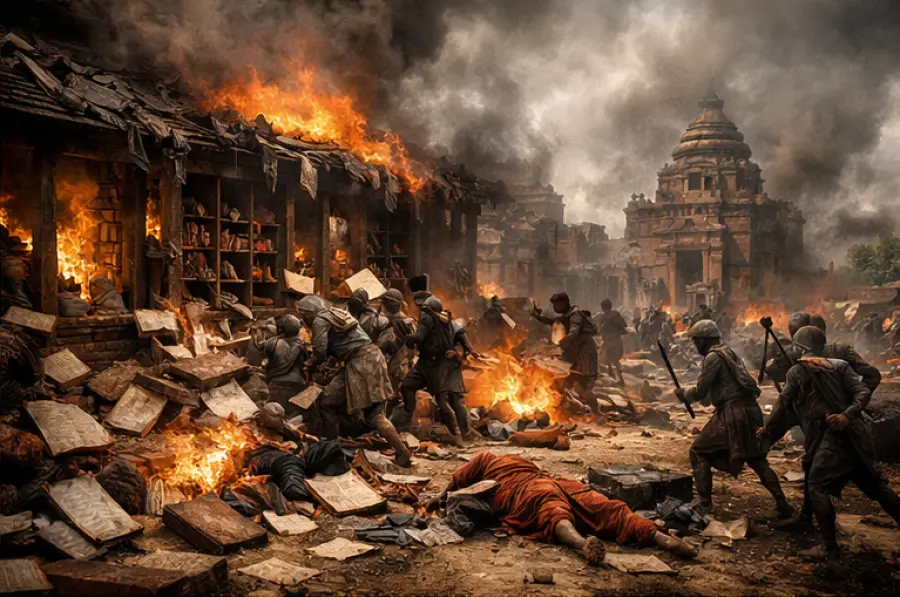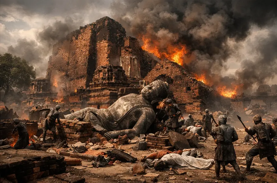 नालंदा विश्वविद्यालय पर हुआ आक्रमण केवल एक सैन्य घटना नहीं थी, बल्कि एक सभ्यता के ज्ञान–केंद्र का अंत था।